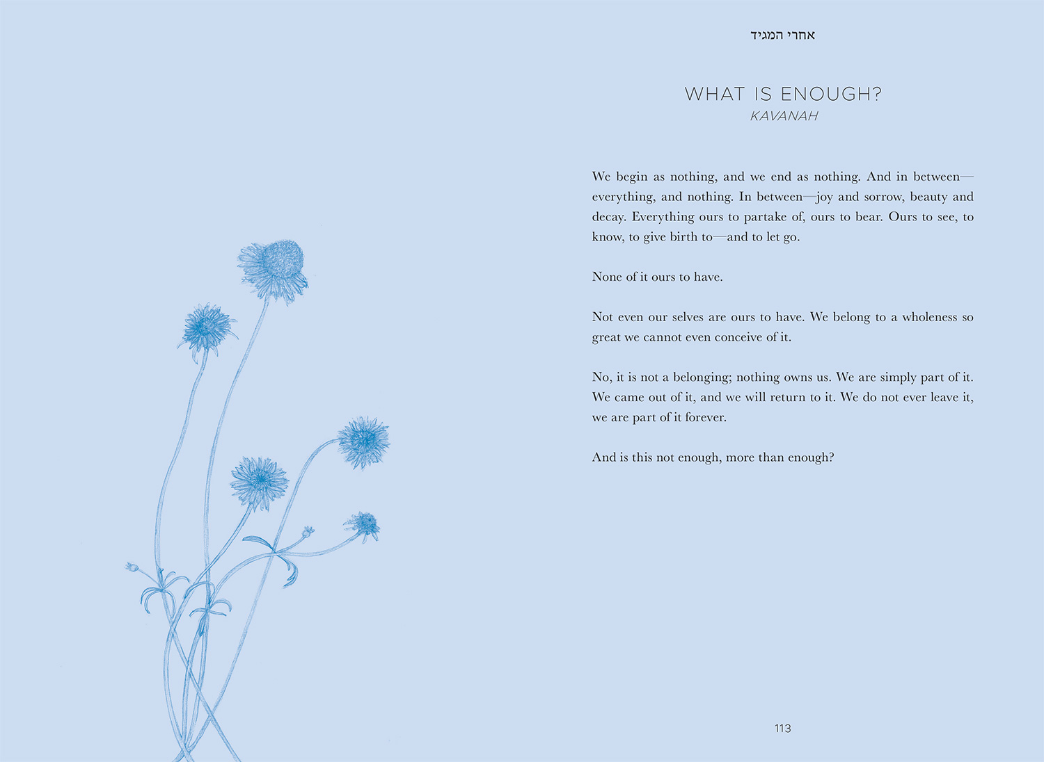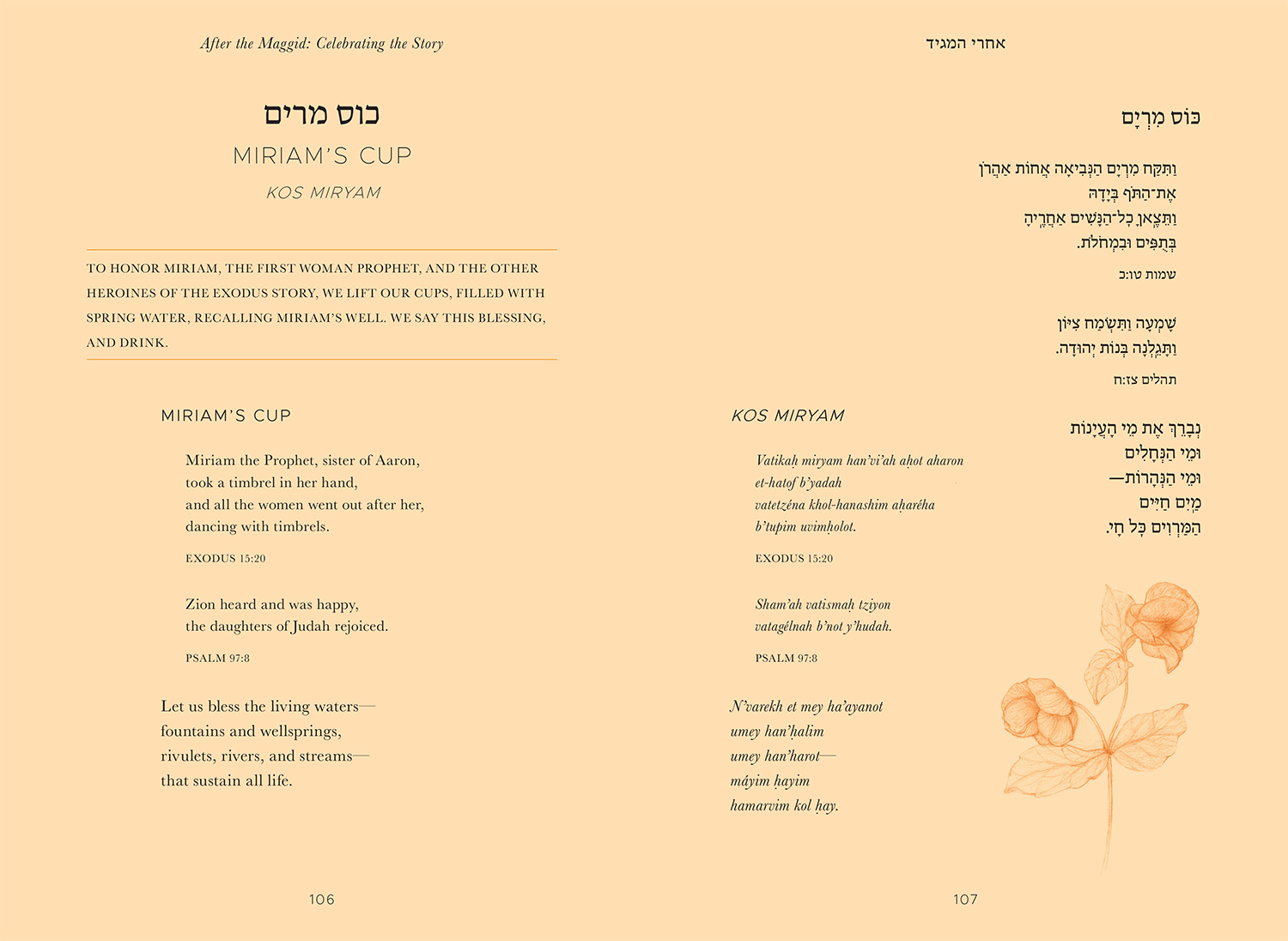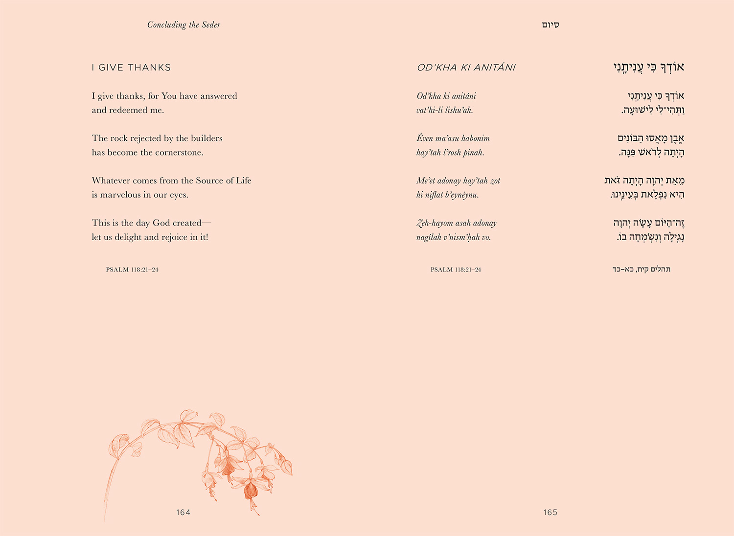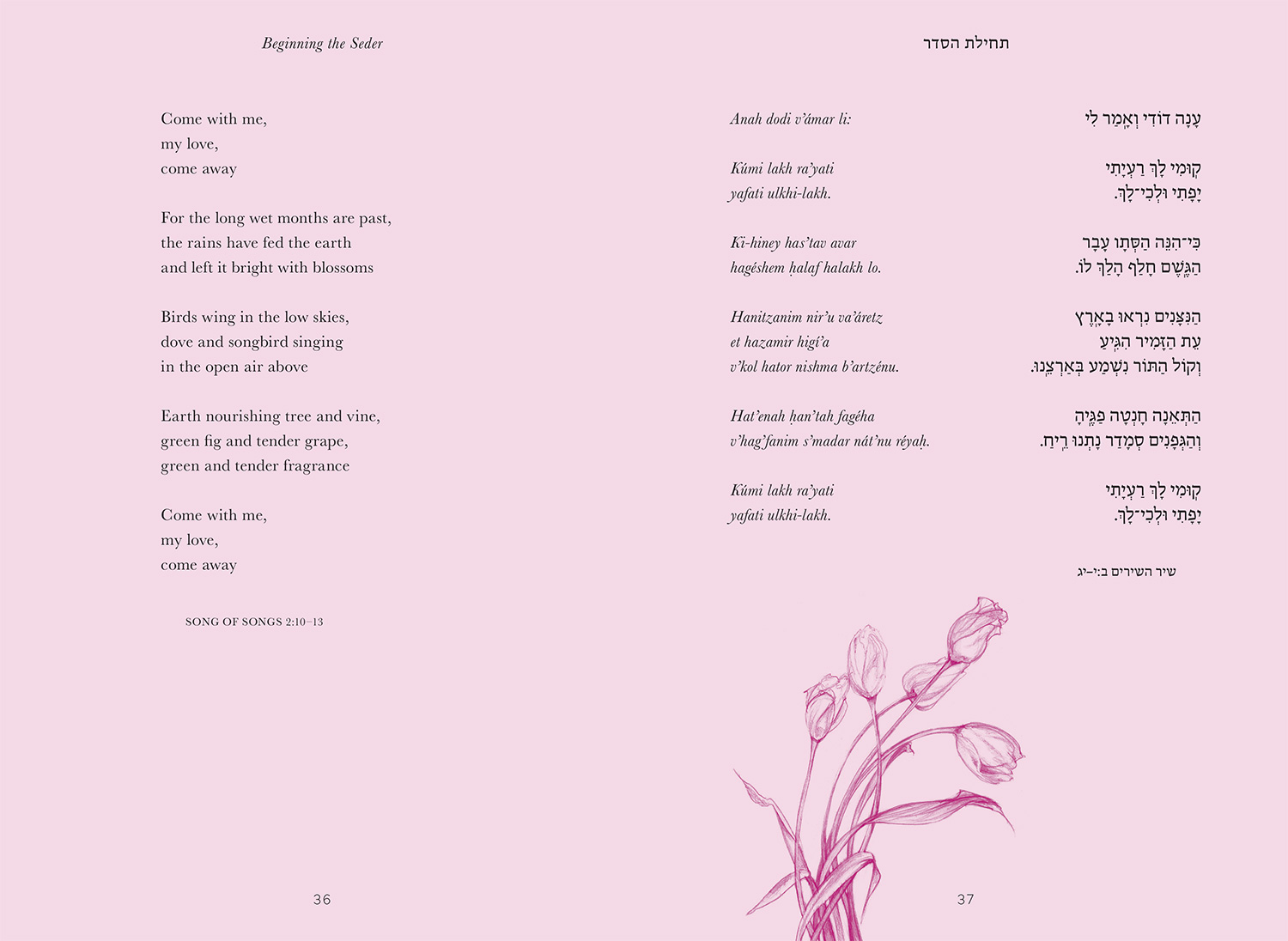 “Marcia Falk has lovingly gifted us with a poetic recounting of the biblical narrative along with eloquent rituals, blessings, and meditations. Pastel-colored pages invite readers to distinguish the book’s varied elements. Rather than illustrate her haggadah with yet more interpretations of centuries-old classic iconography, Falk adorns her celebratory text with her own elegantly drafted spring flora to create a gorgeous and exceptionally important haggadah.”
