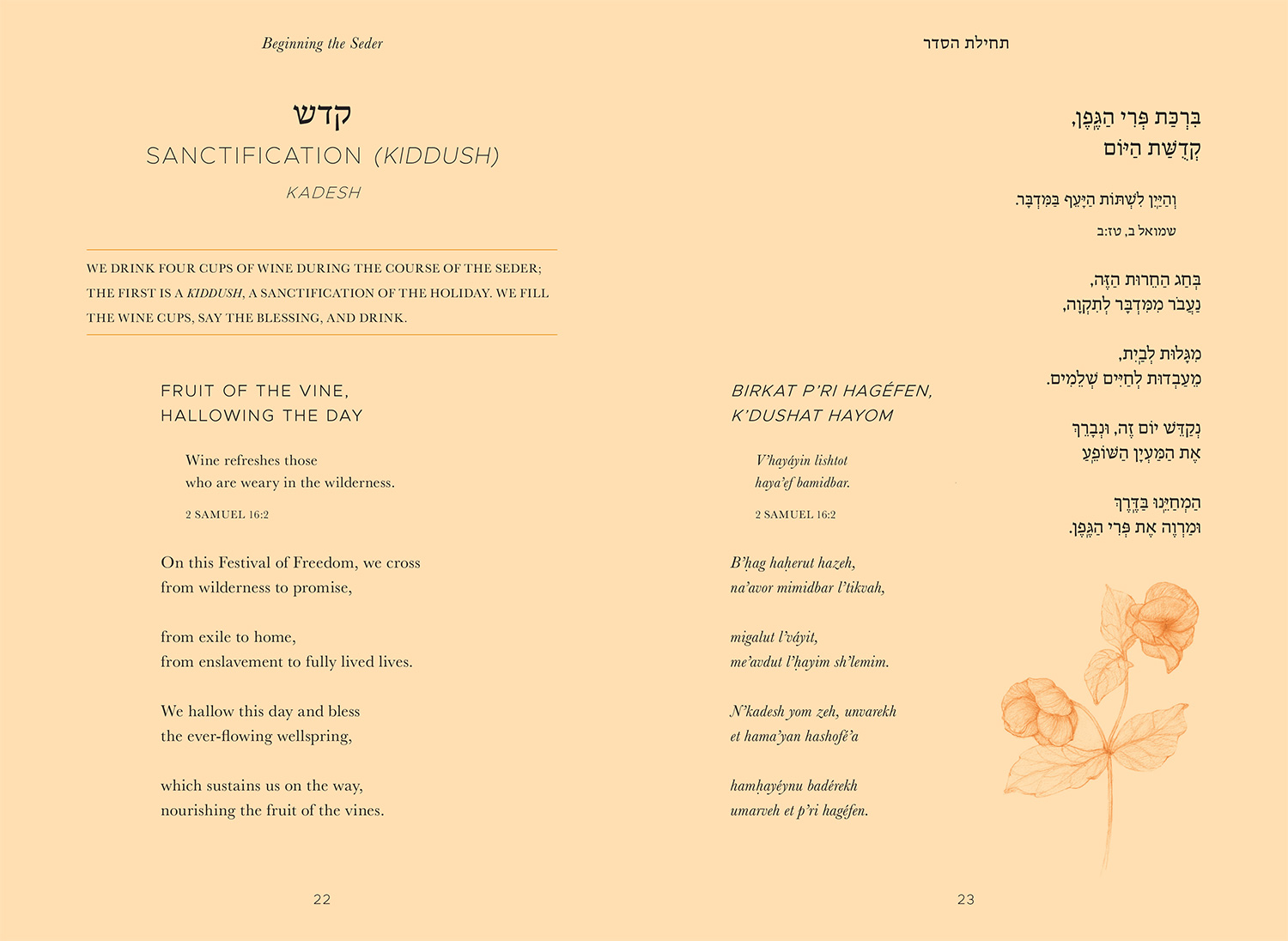 “How lovely to have a haggadah that makes central the biblical narrative that hovers over—but is absent from—the traditional haggadah. Those familiar with Marcia Falk’s transformational work on Jewish blessings will be delighted by her new blessings for all parts of the seder, while those not yet acquainted with her blessings will find them a revelation. This is a beautiful haggadah.”
